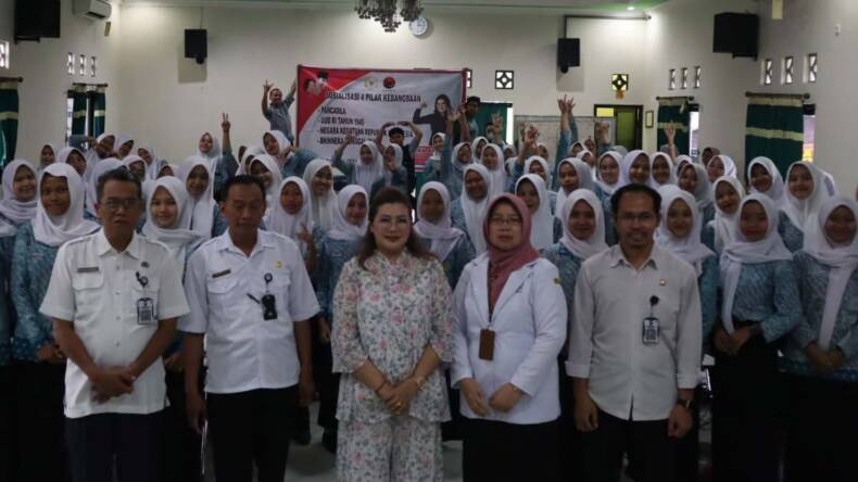 PONOROGO – Anggota Fraksi PDI Perjuangan DPR RI, Ina Ammania, melakukan Sosialisasi Empat Pilar Kebangsaan di SMK Negeri 1 Ponorogo, Rabu (22/2/2023).