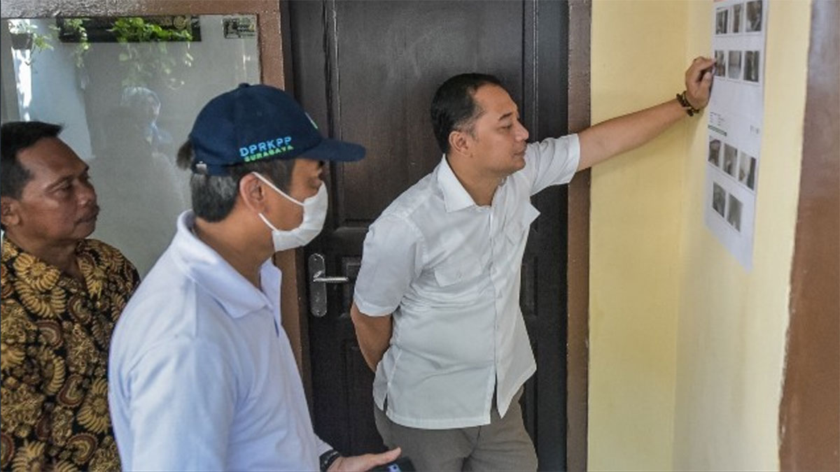 Wali Kota Surabaya Eri Cahyadi sempat mengunjungi sejumlah rumah yang sudah rampung diperbaiki.