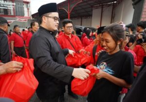 KEDIRI – Menjelang waktu berbuka puasa, Ketua DPC PDI Perjuangan Kabupaten Kediri Hanindhito Himawan Pramana ...