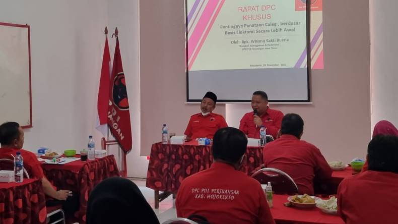 MOJOKERTO – Setelah menyelesaikan konsolidasi organisasi musyawarah anak cabang (Musancab) di 666 Pengurus Anak Cabang (PAC), Dewan Pimpinan Daerah (DPD) PDI Perjuangan Jawa Timur melaksanakan penataan organisasi sekaligus evaluasi kinerja organisasi di 38 kabupaten kota seluruh Jawa Timur. Di antaranya penataan calon anggota legislatif DPRD tingkat II. Hal tersebut perlu dilakukan, mengingat di Jawa Timur, PDI Perjuangan harus bisa mempertahankan kemenangan, baik kemenangan kursi maupun kemenangan suara.