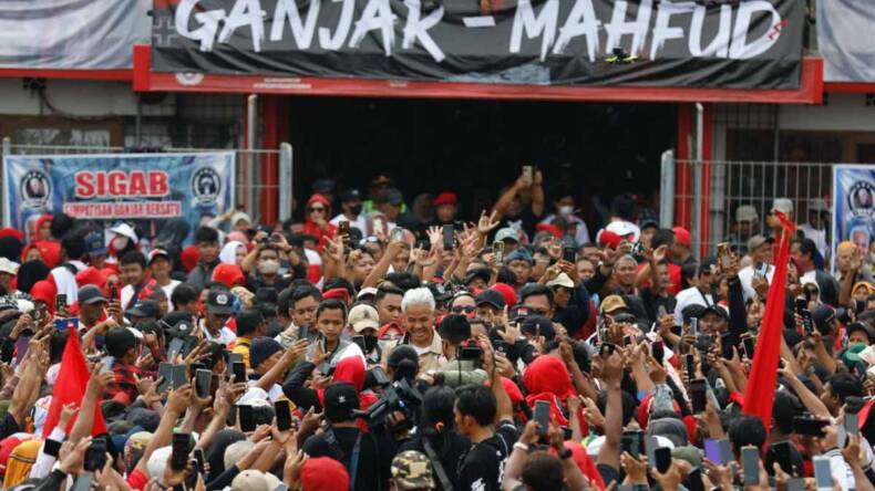 “Saya mau cerita banyak, tapi hari ini Grobogan sedang berduka. Rasanya tidak perlu berpanjang-panjang karena saudara kita sedang kebanjiran,” ujar Ganjar di hadapan puluhan ribu pendukungnya.