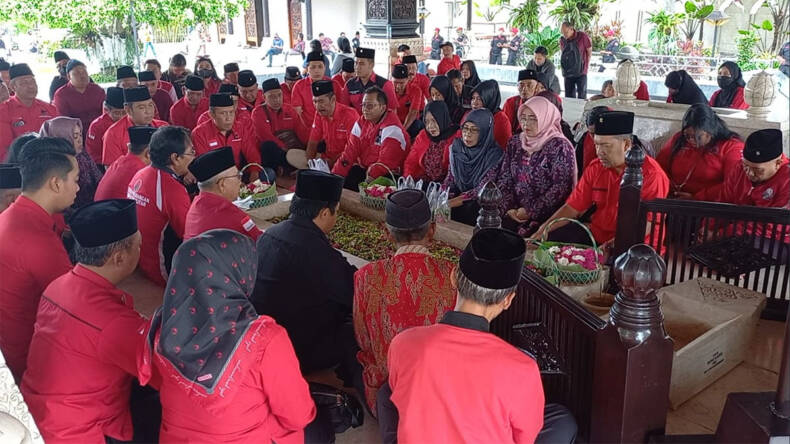 Ikut nyekar, Ketua DPC PDI Perjuangan Kabupaten Blitar Rijanto, didampingi anggota Fraksi PDI Perjuangan DPRD Provinsi Jawa Timur, Guntur Wahono, bersama jajaran pengurus DPC, PAC, Bacaleg, badan, dan sayap partai.