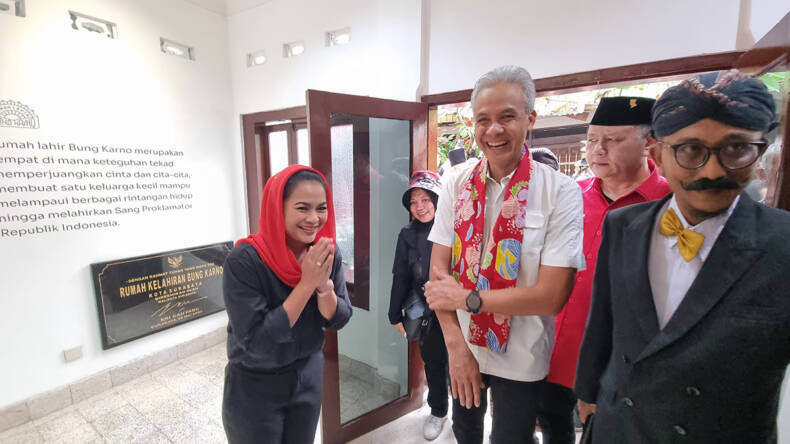 Kedatangan Ganjar di rumah kelahiran Bung Karno didampingi oleh Plh Ketua DPD PDI Perjuangan Jatim Budi Sulistyono beserta jajaran, anggota DPR Puti Guntur Soekarno yang juga cucu Bung Karno, anggota DPR Indah Kurnia, Wali Kota Surabaya Eri Cahyadi, Wawali Surabaya Armuji, dan Ketua DPC PDIP Surabaya Adi Sutarwijono.