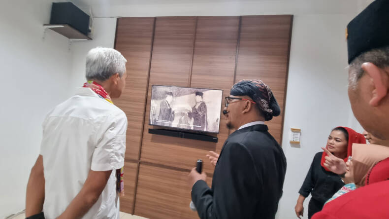 Ganjar juga melihat kamar tempat kelahiran Sang Proklamator. Dia didampingi komunitas sejarah Begandring Soerabaia. Mereka menjelaskan riwayat rumah itu. Ganjar beberapa saat terdiam. Tatapan matanya serius.
