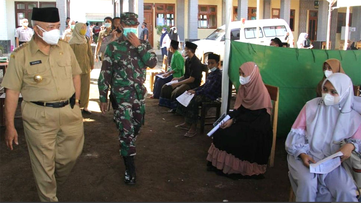 MALANG – Bupati Malang HM Sanusi meninjau pelaksanaan Vaksinasi Merdeka yang berlangsung di Pondok Pesantren Raudlatul Ulum, Gondanglegi, Kabupaten Malang, Selasa (7/9/2021).