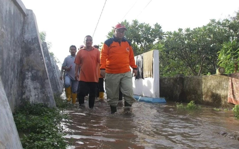 KABUPATEN PROBOLINGGO – Wakil Bupati Probolinggo, Timbul Prihanjoko mendatangi lokasi banjir di Kelurahan Patokan Kecamatan Kraksaan, Sabtu (19/11/2022).