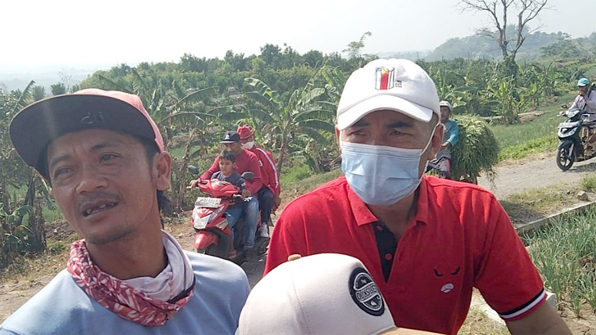 BATU – Ketua DPRD Kota Batu Asmadi mengunjungi Desa Torongrejo, Kecamatan Junrejo, Kota Batu, Minggu (6/6/2021). Seusai melakukan kegiatan bersih sungai bersama DPC PDI Perjuangan Kota Batu, kader Banteng ini meninjau lokasi pembangunan jalan yang dilakukan secara mandiri oleh warga Desa Torongrejo.