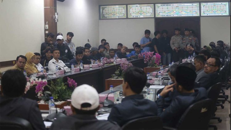 Mereka ditemui dua unsur pimpinan dewan, dan beberapa ketua fraksi di ruang audensi gedung DPRD.