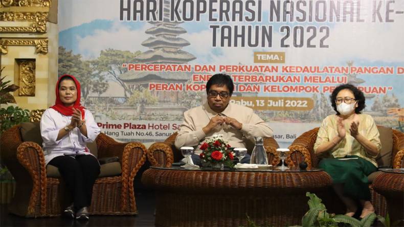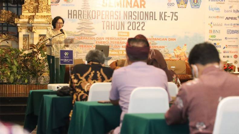 SANUR – Dewan Koperasi Indonesia (Dekopin) menggelar seminar nasional dengan tema ‘Peran Perempuan dalam Memperkuat Ekonomi Rumah Tangga Sebagai Dasar Ketahanan Ekonomi Bangsa’ secara hybrid di Prime Plaza Hotel Convention Room, Sanur, Bali, Rabu (13/7/2022).