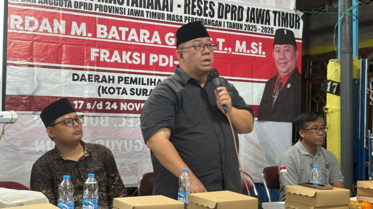 Hal tersebut disampaikan Yordan saat menggelar reses DPRD Jawa Timur di RT 10, RW 06, Kelurahan Gundih, Kecamatan Bubutan, Senin (24/11/2025) malam.
